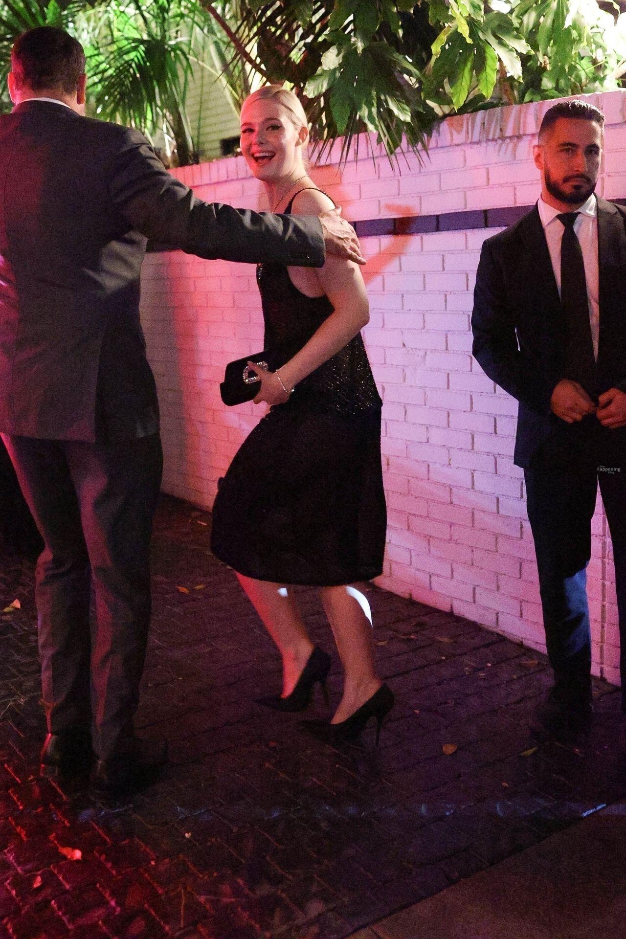 Elle Fanning rocked up to the Armani after-party at Chateau Marmont in LA after the Academy Museum Gala. She wore a sheer black mesh dress that let her nude tits show right through, along with her sexy legs and body.