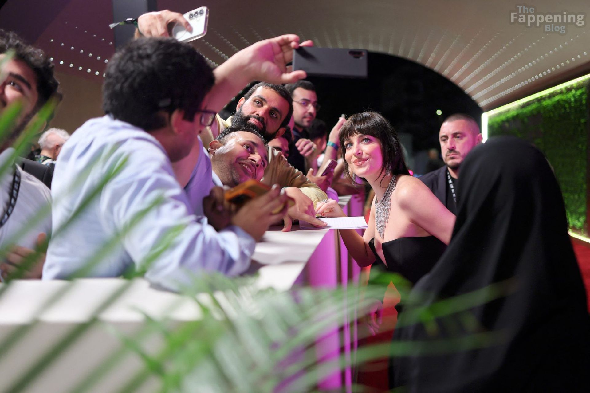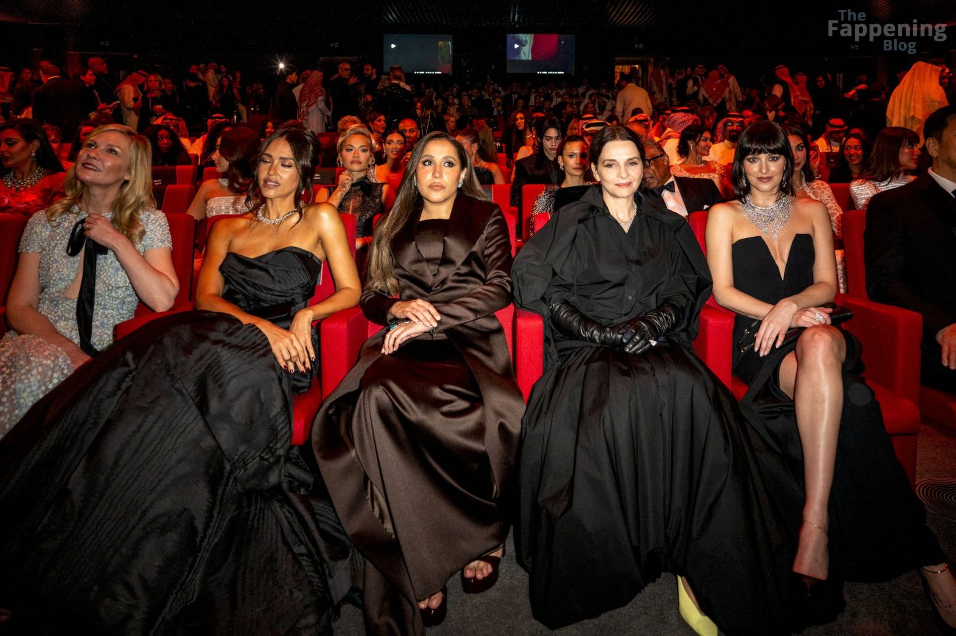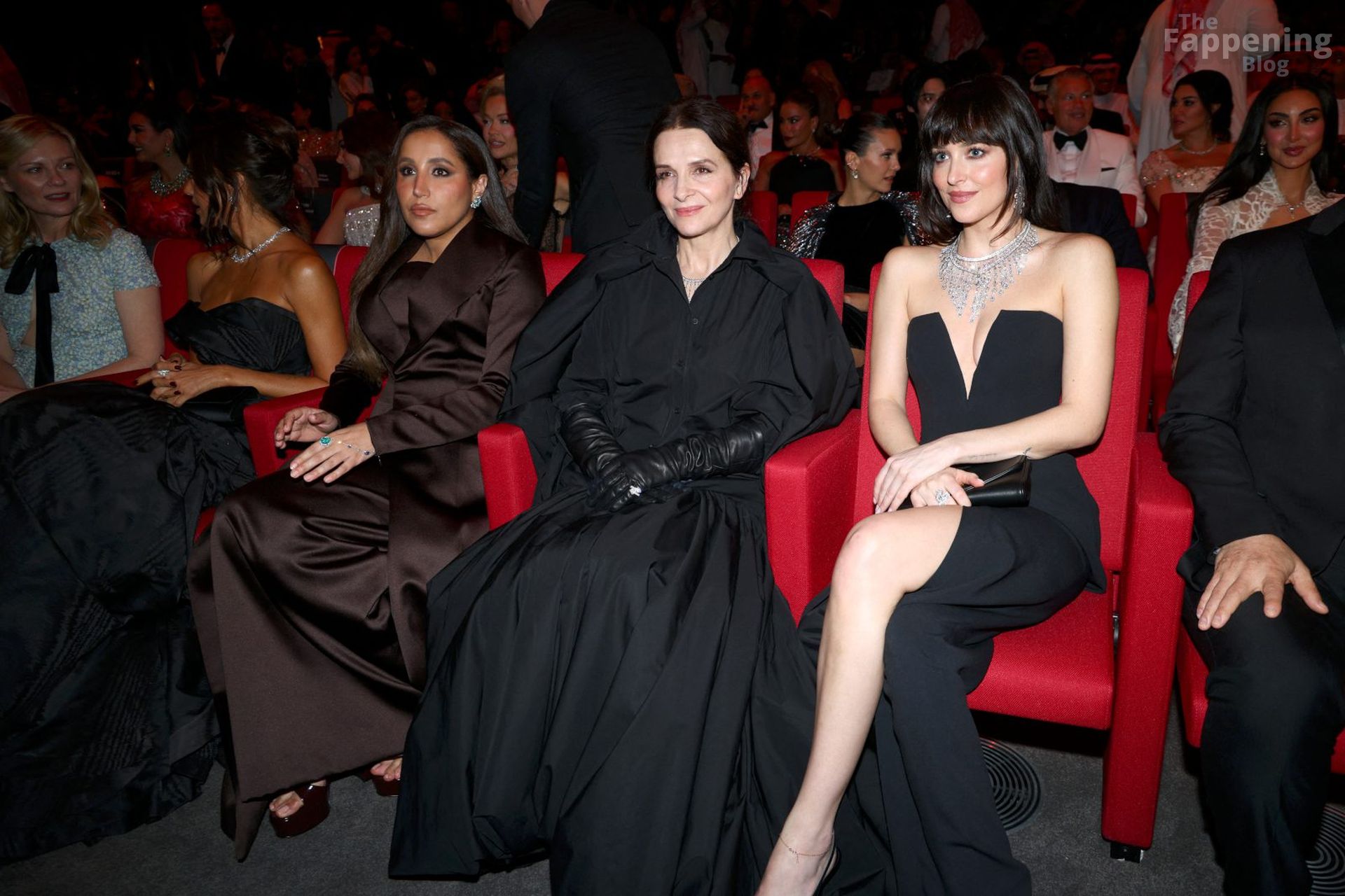Dakota Johnson shows off her sexy tits and legs in a revealing gown at the 2025 Red Sea Film Festival.