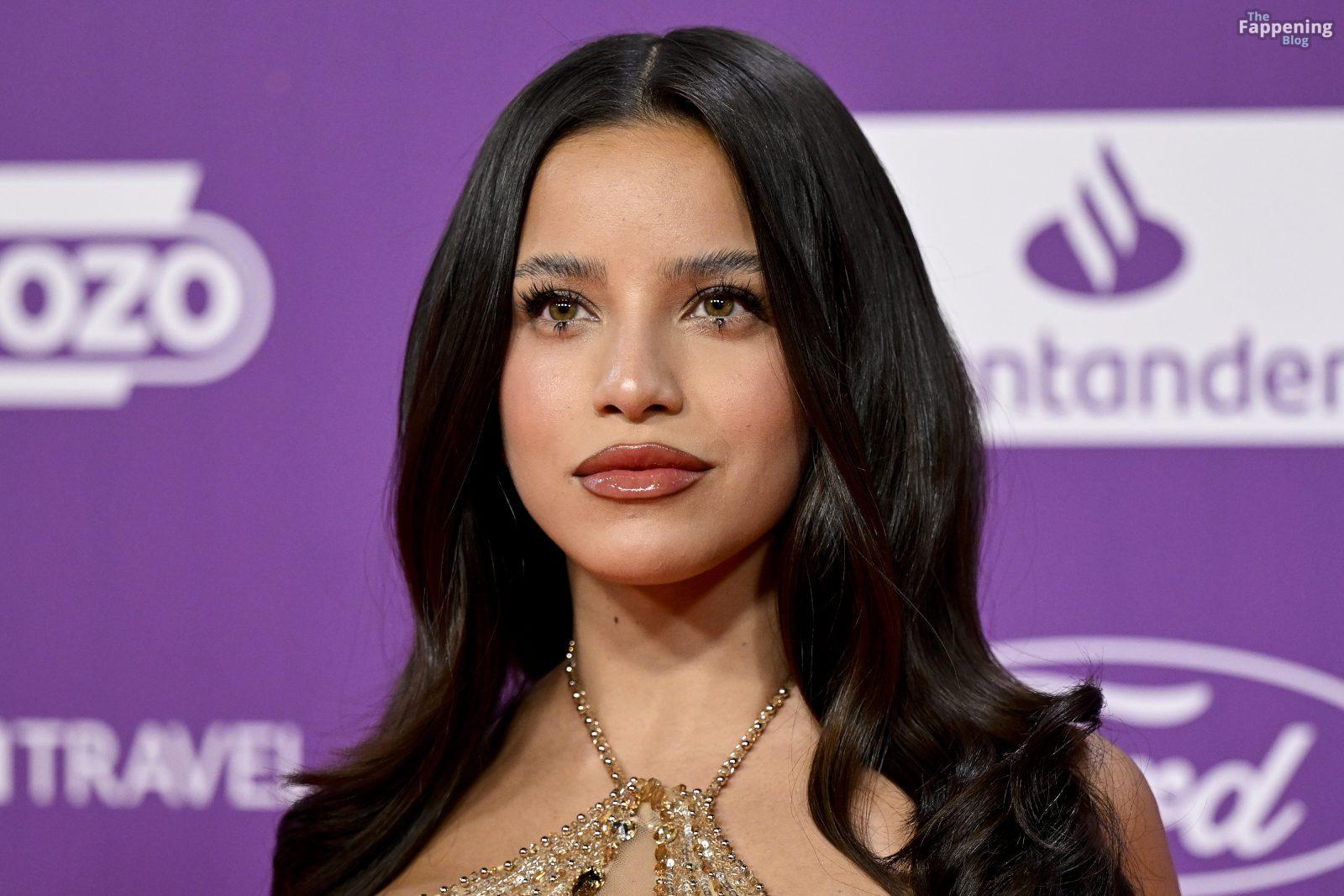 Emilia Mernes killed it at the LOS40 Music Awards Santander 2025 in Valencia, Spain. She rocked a sheer glittery gown layered over skimpy nude underwear.