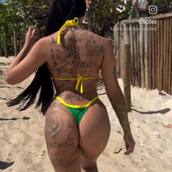 German tattooed babe InkedSophiie shows off her sexy boobs in an orange bikini top.
