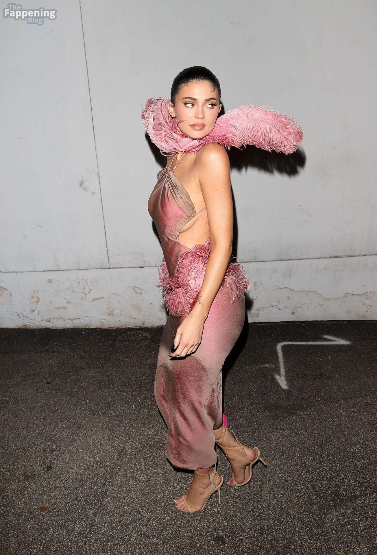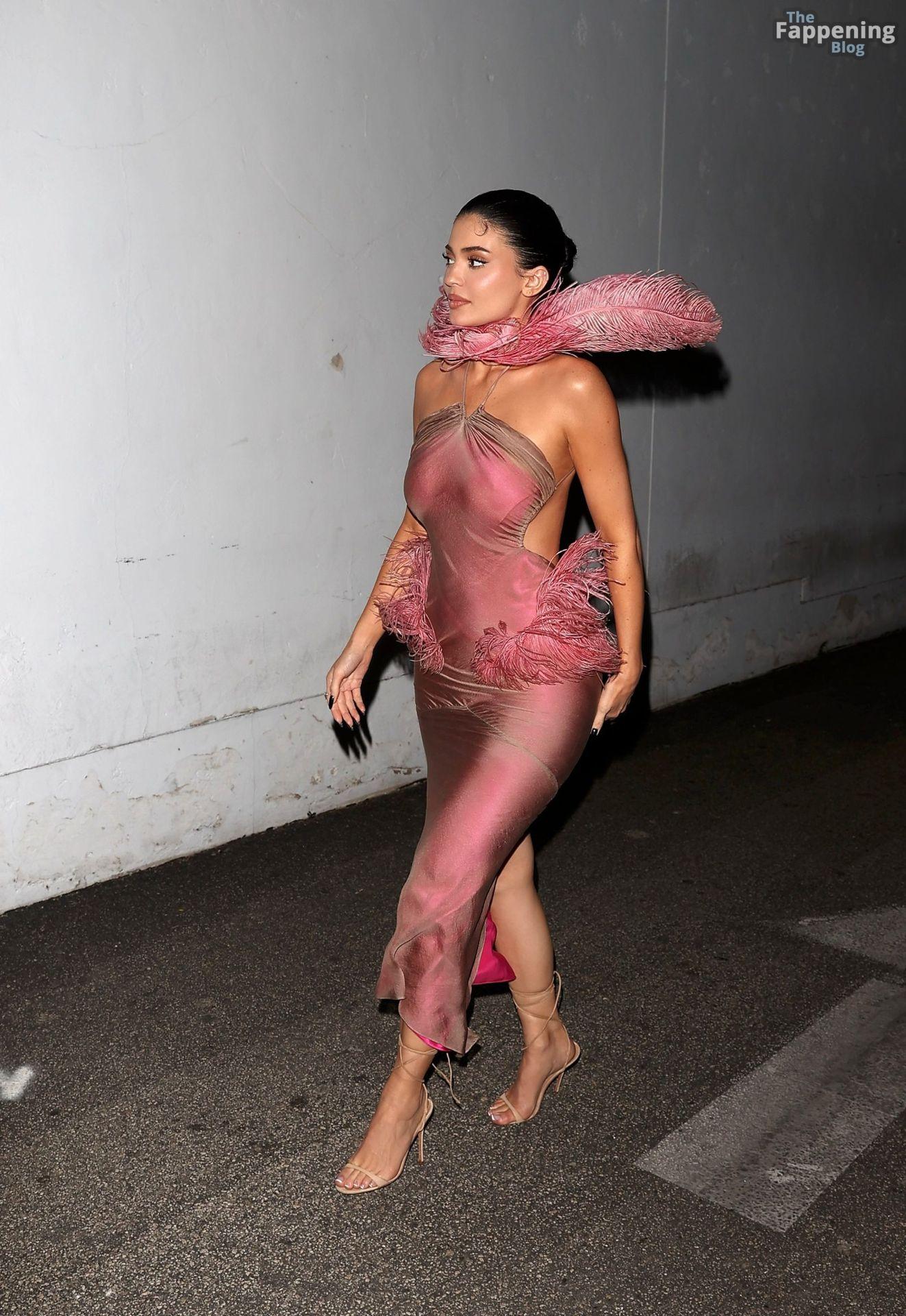 Kylie Jenner made a sexy entrance at the Kylie Cosmetics Christmas party on Tuesday night, arriving at Casa Vega Mexican restaurant in Sherman Oaks wearin’ a striking custom dress designed by Conner Ives.