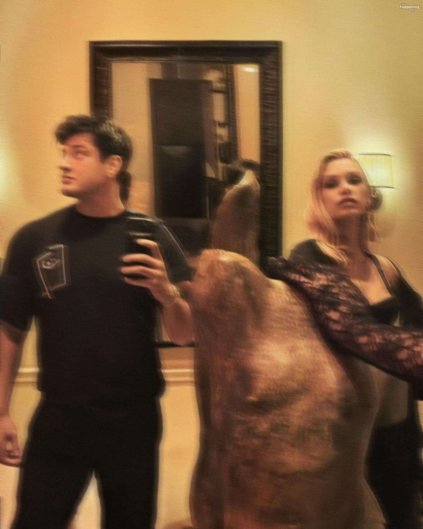 Stella Maxwell was pictured in black, rockin’ nylons and heels. She flaunted her legs, ass, and cleavage.