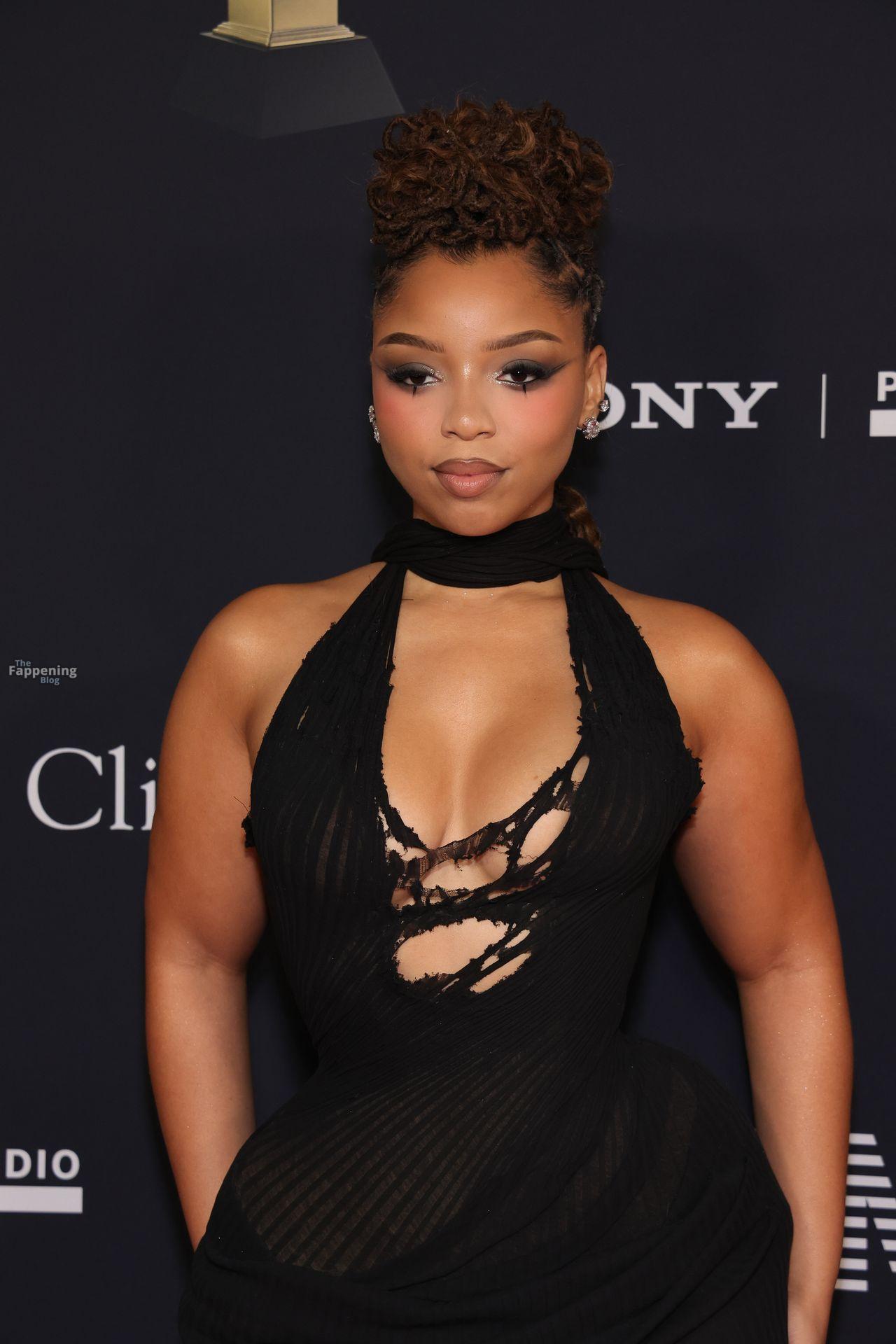 Chloe Bailey arrives on the red carpet of the Pre-Grammy Gala at the The Beverly Hilton hotel in Beverly Hills, California.